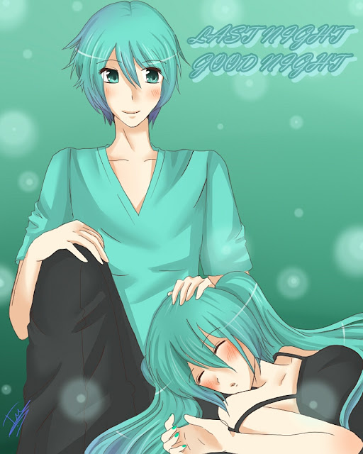 Dejo este fanart de Miku º///º, el de abajo es un fanart echo por mi, es decir, que los personages han sido creados por mi ^^, la chica es Kazuyo y el chico Haruo, son mis personajes principales. Por cierto, aunque la chica se llame Kazuyo no tiene nada que ver conmigo, solo que el nombre me parece ideal y al ser mi personaje lo siento mío ^^ me pasa lo mismo con Haruo. En realidad estos dos son la evolución de personajes con los que he ido trabajando durante años y ahora son así ^^